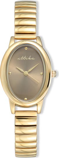 An oval-shaped case and gleaming minimalist indices complete the elegant design of a three-hand watch secured by a timeless mesh strap.