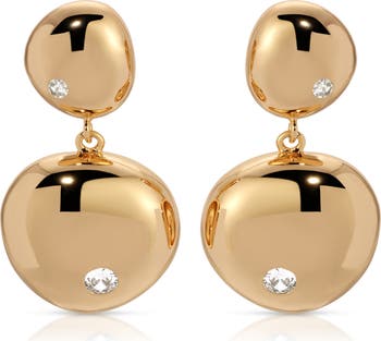 Cubic zirconia enhance the shine of polished drop earrings inspired by smooth pebbles.
