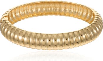 Pillowy ridges enhance the shine of this hinged bangle bracelet that's perfect to layer or wear solo.