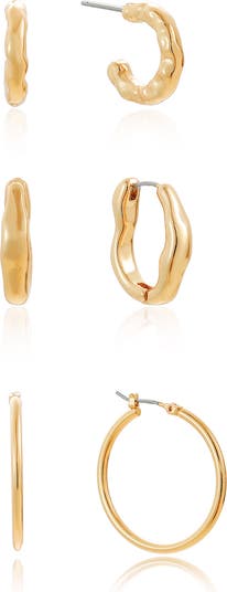 Switch up your hoop rotation with this set of gleaming hoop earrings in various silhouettes and plated in a rich golden tone.