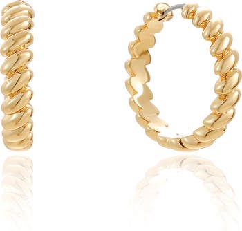 A puffy twist silhouette adds contemporary shine to these modern hoop earrings.
