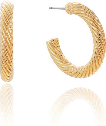A twisted silhouette adds contemporary shine to these modern hoop earrings.