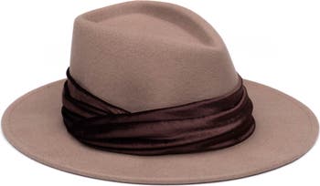 Super soft wool composes this classic dented-crown fedora hat, finished off with a velvet tie trim.