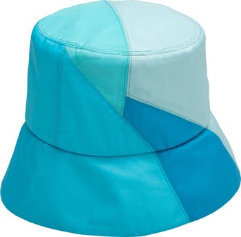 A summery bucket hat updated in a cool colorblock design makes the perfect finish to your vacation-ready style.