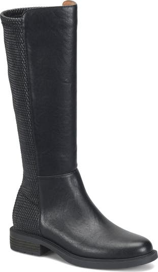 A round toe and stacked heel balance a comfort-cushioned knee-high boot fashioned with a side zipper for easy entry.