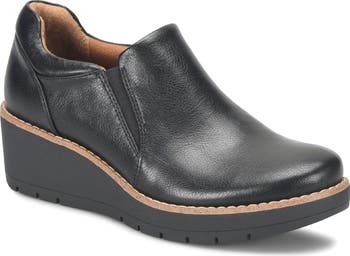 Bring polished style to any outfit with this wedge-heel slip-on fit with a cushioned insole and rubber grip sole.