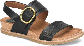 A contoured footbed and foam cushioning promise ease and comfort in a summery sandal secured by chic faux-leather straps.