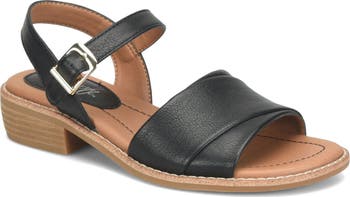 Slide into comfort on your next sunny-day in this slingback sandal featuring a crisscross vamp with a buckle closure, a cushioned footbed and slight heel.