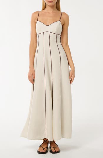 Crisp contrast piping accentuates the A-line silhouette of this effortlessly chic and modern midi dress.