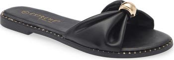 High-polish hardware cinches the toe strap of this elevated slide sandal