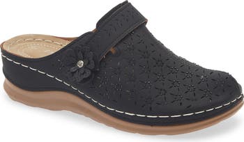 A well-cushioned footbed brings comfort to every stride you take in a clog shaped from faux leather and adorned with tonal studded hardware.