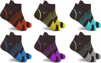 A sophisticated pattern elevates the style of ankle-length socks made with antibacterial compression that supports blood circulation and reduces leg swelling.
