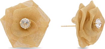 Bring a burst of floral finesse to your ensemble with these flower-shaped chain mesh stud earrings centered with sparkly cubic zirconia.