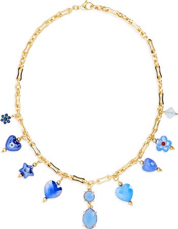 Bring striking color to your look with this statement-making collar necklace crafted in goldtone plate and adorned with mixed-cut crystal charms.
