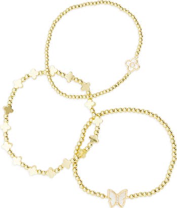 Calista Set of 3 Beaded Pavé Butterfly & Clover Bracelets