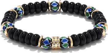 Glossy beads blend with enamel and goldtone pavé spacers on a stretch bracelet imbued with a vibrant mix of color and shine.