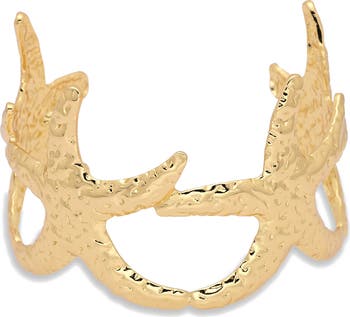 Two friendly starfishes cling to each other, forming this statement cuff bracelet.