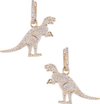 Sparkling CZ embellished T-Rex huggie drop earrings bring rawr-some style to any outfit.