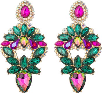 Lustrous faceted crystals make a sparkling statement on these colorful drop earrings.