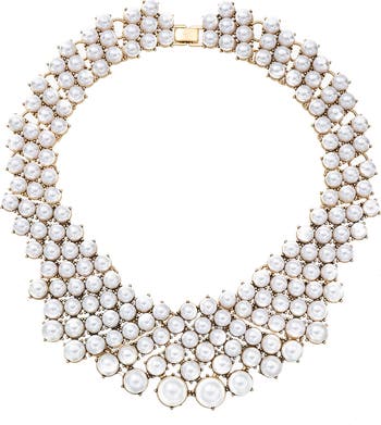 An elegant cluster of cabochon glass pearls create a stunning collar neckalce.