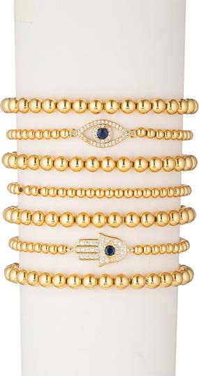 - - Evil eye hamsa titanium gold stretch beaded bracelets - Approx. 2.5" adjustable circumference - Imported Orders cannot be shipped to Canada, Puerto Rico, APO, FPO or P.O. Boxes.