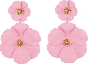 Colorful floral drop earrings in full bloom feature bold enamel petals for romantic style.