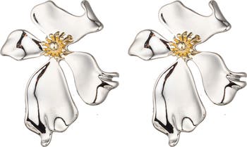 Two-tone plating creates dimension against large-scale studs in a flower shape that sweetens any ensemble.