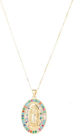 Colorful cubic zirconia stones adorn this pendant of the Virgin Mary; a gorgeous piece to give as a gift or keep for yourself.