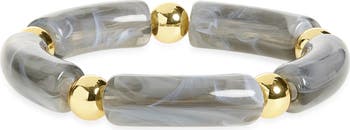 Complete your everyday look with this stretch bracelet boasting curved resin beads and polished balls.