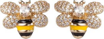 Sparkling stones decorate this pair of bold, queen bee stud earrings.
