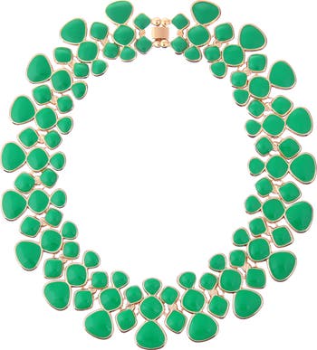 Rich enamel-filled geometric links create an abstract honeycomb necklace to drape around your collar for a show-stopping look.