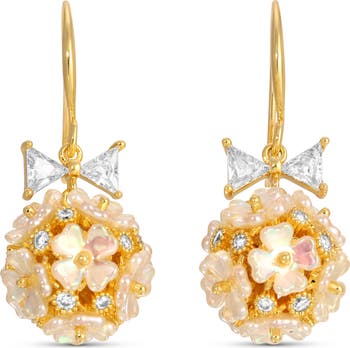 Sweeten any outfit with floral ball drop earrings illuminated by sparkly cubic zirconia.