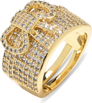 Combine the coquettish aesthetic with glitz and gleam and you'll get this statement-making ring topped with a large bow and covered in bright-white cubic zirconia.