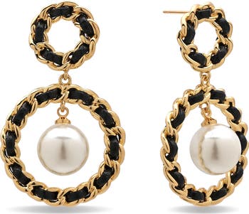 Lustrous faux pearls sway from these artfully woven drop earrings boasting a high-shine finish.