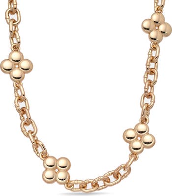 Quartet clusters of goldtone beads station this pretty choker necklace.