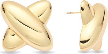 A crossover silhouette lends modern style points to polished stud earrings that bring statement-making shine to your stack.