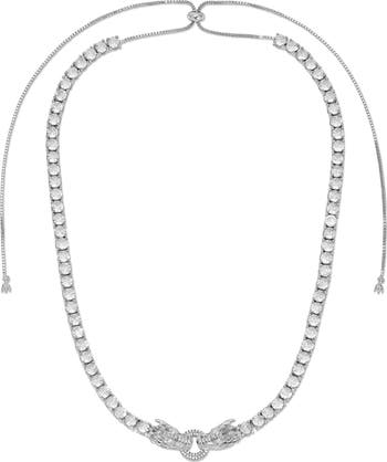 Dragon-head charms show off your wilder side when you sport this chain necklace that's glinting with cubic zirconia stones.
