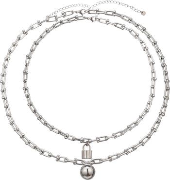 A sleek lock pendant grounds this paperclip chain necklace crafted from silvertone plate.