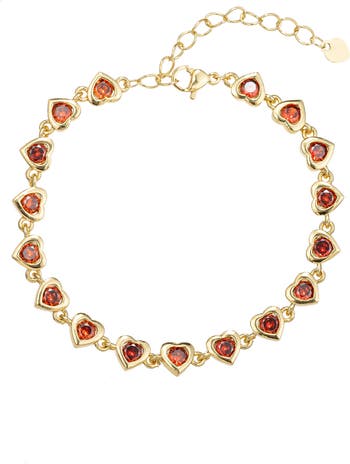 Show off romantic sparkle with this red cubic zirconia heart-link bracelet boasting a high-shine finish.