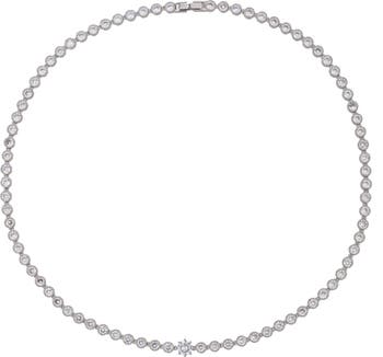 Round cubic zirconia bring celestial sparkle to this stunning collar necklace that brings a touch of glamour to any look.