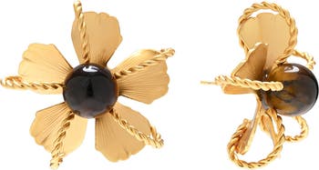 Bring botanical shine to your lobes with these statement studs shaped like flowers with fluted petals and twisted accents.