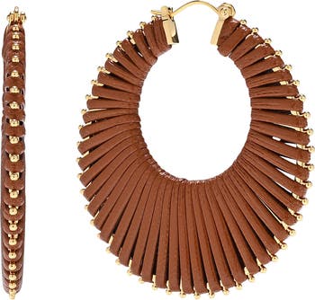 Faux-leather cords texture these wrapped-oval hoop earrings boasting a high-shine finish.