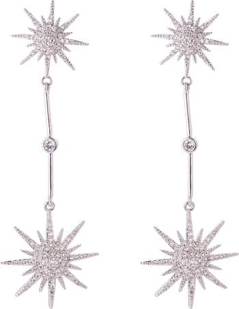 Evoke celestial shine in stunning constellation earrings suspending star drops illuminated by sparkly pavé cubic zirconia.