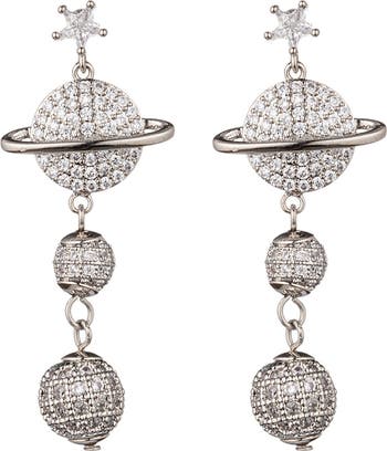 Perfect for the astronomy lover in your life, these drop earrings feature pavé Saturn studs and balls.