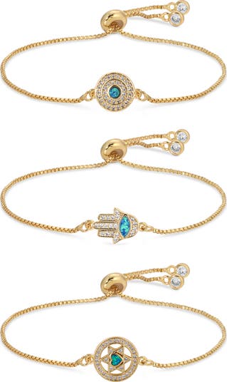 Cubic zirconia embellishments bring sweet sparkle to this set of three slider bracelets that are perfect to stack or wear solo.