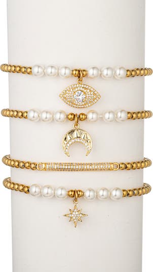 Set of Four CZ & Imitation Pearl Beaded Bracelets