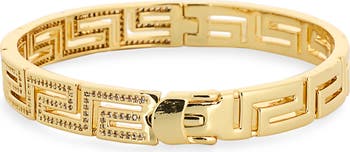 Sparkly cubic zirconia trace half of this polished geometric bangle bracelet that instantly blings up your stack.