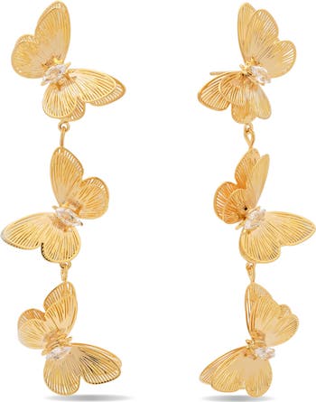 Marquise-cut crystals bring whimsical sparkle to these statement earrings showcasing swingy butterflies framed by glossy cutout wings.