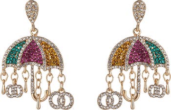 Give your look a special occasion sparkle with these umbrella-shaped drop earrings covered in a colorful array of CZ stones.