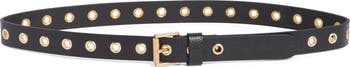 Grained leather adds a sophisticated detail to this slender belt neatly punctuated by polished eyelets.